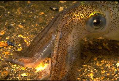 Pecking fiber will allow the squid to keep its beak clean and sharp. A marvelous squid with a sharp beak is a joy to watch hunt. Drop an expired bird into the tank every couple of months and videotape the action! A good pecking fiber material can be garnered by running fine gravel through a rock tumbler for 3-5 weeks.